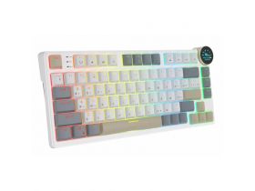 Игровая беспроводная мембранно-механическая клавиатура FreeWolf_M96, RGB подсветка, инфо-дисплей. Бежевая 4594469876