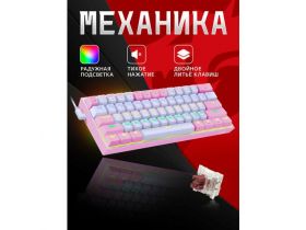 Игровая клавиатура механическая Redragon Fizz Радужная тихая, бело-розовая компактная (60%) 101831900992