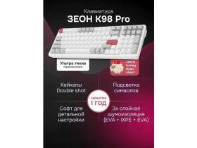 Игровая механическая клавиатура ЗЕОН K98 PRO white/gray/red, с подсветк 4375896421