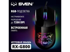 Мышь проводная компьютерная оптическая с RGB подсветкой / Мышка для компьютера, ПК, ноутбука игровая SVEN RX-G800 / 5+1кл. / 200-7200 DPI / ПО / RGB-подсветка / игровая упаковка 102823517020