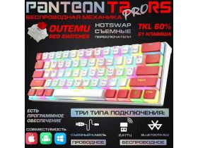 PANTEON T2 PRO RS White-Red (76) Механическая игровая программируемая клавиатура (60%, подсветка LED RGB, свитчи Outemu Red 61 кл, HotSwap, USB/Bluetooth/2,4 Ггц, аккумулятор 1450 mAh, ПО), цвет: белый-красный (76) 103105540456