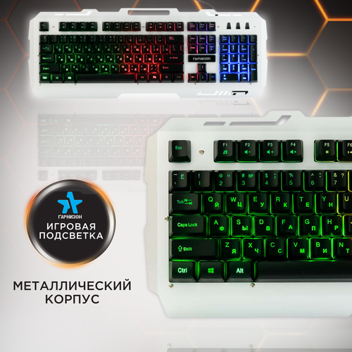Найти - Клавиатура игровая Гарнизон GK-340GL, металлический корпус, подсветка RAINBOW