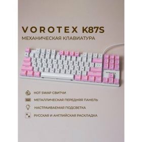 Найти - Игровая клавиатура VOROTEX K87S Red Switch, белый/розовый, английская/русская (ANSI)