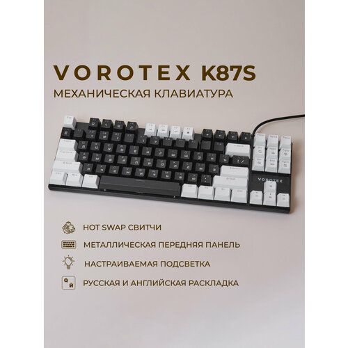 Найти - Игровая клавиатура VOROTEX K87S Red Switch, черный/белый, русская