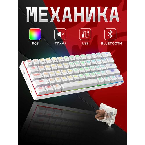 Игровая беспроводная клавиатура Redragon Draconic RU, RGB, bluetooth 5.0, белая: