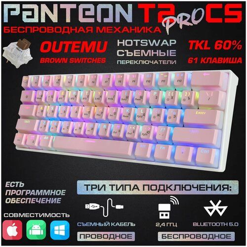 НАЙТИ ВЫГОДНЕЕ - Механическая игровая клавиатура PANTEON T2 PRO CS(RGB LED, OUTEMU Brown, TKL60%,61кл, USB) бело-розовая