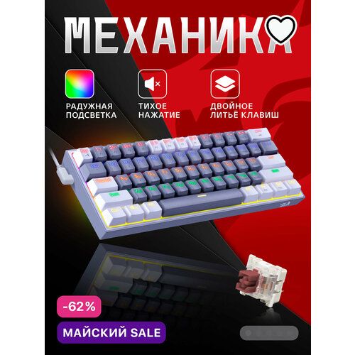 Найти - Игровая клавиатура механическая Redragon Fizz Радужная тихая, серо-белая компактная (60%)