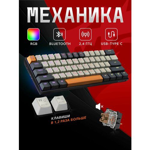 Найти - Беспроводная механическая клавиатура для компьютера Redragon Caraxes Pro(60%)