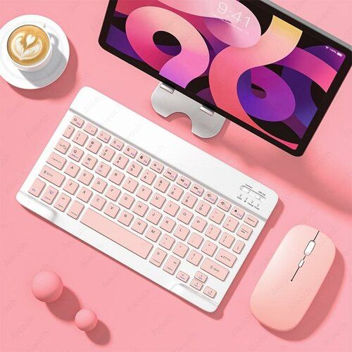 Найти - Беспроводная клавиатура и мышь для телефона и планшета с bluetooth для Android/IOS/Windows розовая