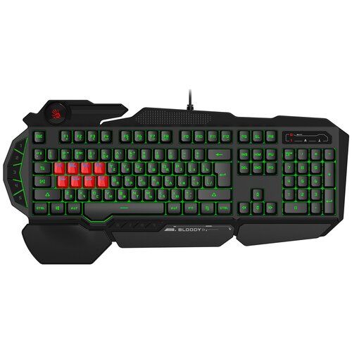 Клавиатура A4Tech Bloody B318 – это игровое устройство, обладающее соответствующим интересным дизайном, эргономичностью и водонепроницаемым корпусом, благодаря которому можно пить чай, сидя за компьютером, не сильно переживая за сохранность модели в случае, если он будет пролит. Полноразмерная A4Tech Bloody B318 содержит 113 клавиш, включая 9 дополнительных, назначение которых можно самостоятельно программировать. Прорезиненные ножки делают клавиатуру устойчивой, а подставка для рук позволяет долго работать на ней, не уставая.