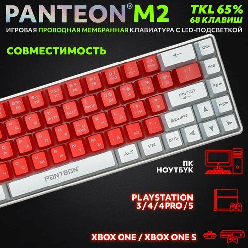 Найти - PANTEON M2 Red-White(06) Игровая мембранная TKL (65%) клавиатура с LED-подсветкой MULTICOLOR (68 кл, USB), цвет: красный-белый (06)