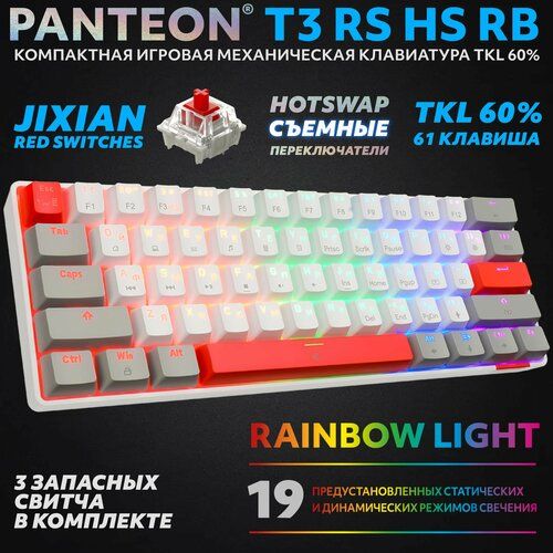 Найти - PANTEON T3 RS HS RB White-Grey (37) Механическая клавиатура (TKL 60%, подсветка LED RAINBOW, Jixian Red, 61 кл, HotSwap, USB), цвет: белый-серый (37)