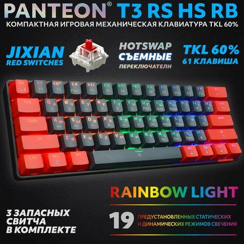 НАЙТИ ВЫГОДНЕЕ - PANTEON T3 RS HS RB Black-Red (46) Механическая клавиатура ( Jixian Red, 61 кл, HotSwap, USB)