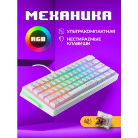 Смазанные механические переключатели TNT Brown 2 дополнительных свитча в комплекте Технология Hot Swap - Совместимость со свитчами других популярных брендов: Cherry, Outemu, Kailh, Gateron RGB подсветка 22 режима подсветки Подсветка символов и клавиш Прочный корпус с шумоподавлением Возможность выключения подсветки - Используйте сочетание клавиш FN + Enter для включения и выключения подсветки Регулируемая яркость подсветки - Используйте комбинацию клавиш "FN + ]}" для усиления и комбинацию "FN + [{" для снижения яркости подсветки Регулируемая подсветка - Меняйте скорость подсветки комбинацией клавиш FN + ’” и FN + : Функция Anti-ghost - Все клавиши Обмен функциями между клавишами "↑←↓→" и "WASD" - Используйте комбинацию клавиш "FN+W" Пуллеры для кейкапов и свитчей в комплекте Компактная конструкция экономит пространство рабочего стола Технология Double injection - Символы не сотрутся, так как клавиши отлиты из двух цветов пластика: черный для области кнопки и белый/прозрачный для символов Для того, чтобы восстановить настройки по умолчанию, используйте сочетание клавиш FN+Пробел Для активации и деактивации кнопок F1-F12 используйте сочетание клавиш FN+ левый Ctrl. Функции INS, HOME, Page UP, Page Down, DEL, END активируются нажатием самой кнопки в сочетании с кнопкой FN Угол наклона клавиатуры регулируется с помощью выдвижных ножек