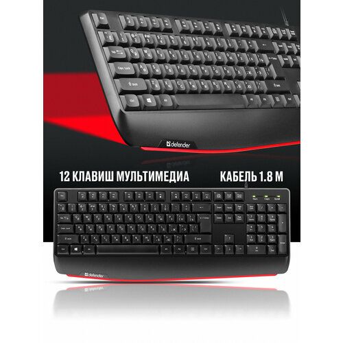 Найти - Проводная клавиатура Defender Atom HB-546 RU, черный,104+FN,1.8м