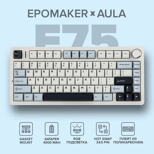 Найти - Беспроводная механическая клавиатура Epomaker x Aula F75, 75%, Bluetooth 5.0, 2.4Ghz, USB Type-C, Английская раскладка