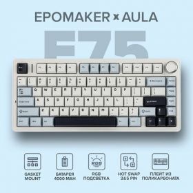 Epomaker x Aula F75 — это современная 75% беспроводная механическая клавиатура, разработанная для тех, кто хочет получить максимальную производительность и комфорт в использовании. Она оснащена передовыми технологиями Bluetooth 5.0 и 2.4Ghz, а также поддержкой подключения через USB Type-C, что делает её универсальной для различных устройств и ситуаций.