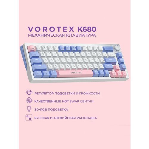 Найти - Клавиатура игровая проводная VOROTEX K680 Yellow Switch (Белый, фиолетовый)