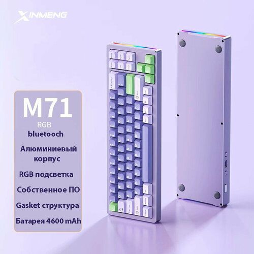 Найти - Игровая беспроводная механическая RGB клавиатура Xinmeng M71 Lavander Bluetooth/2.4G/Type-C, английская раскладка, Лавандовый