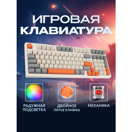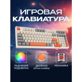 Найти - Клавиатура игровая механическая с разноцветной подсветкой белая проводная 97 клавиш