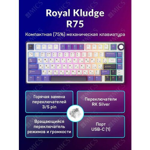 Найти - Проводная клавиатура Royal Kludge R75 RGB Blackberry (RK Silver)