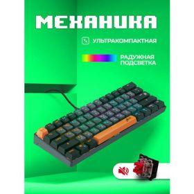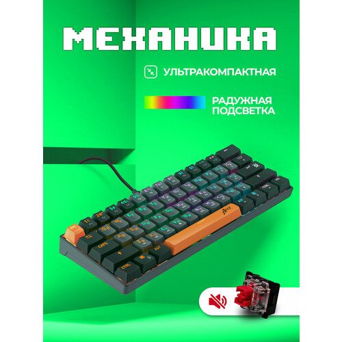 Ультракомпактная механическая клавиатура с кейкапами трех цветов и тихими красными переключателями. Основные преимущества модели: регулируемая радужная подсветка, 21 клавиша, поддерживающая функцию Anti-ghost, а также повышенная износостойкость благодаря технологии Double injection.