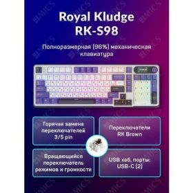 Клавиатура RK Royal Kludge RK S98 — это выдающаяся игровая механическая клавиатура, разработанная для тех, кто ценит качество и производительность. Оснащенная переключателями RK Brown, данная модель предлагает идеальный баланс между тактильным откликом и гладкостью нажатия, что делает ее подходящей для длительных игровых сессий и работы.