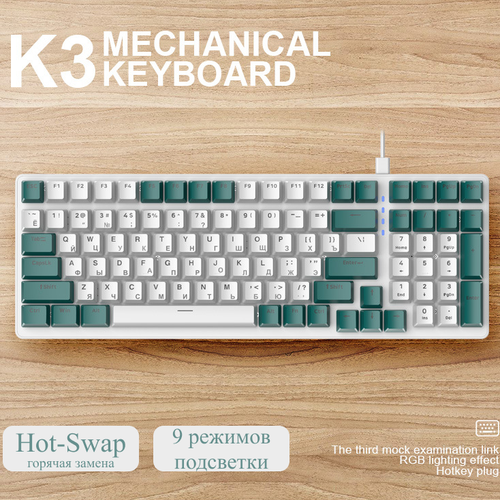 Найти - Клавиатура механическая русская Wolf K3 Hot Swap игровая с подсветкой проводная для компьютера ноутбука Gaming/game keyboard usb светящаяся