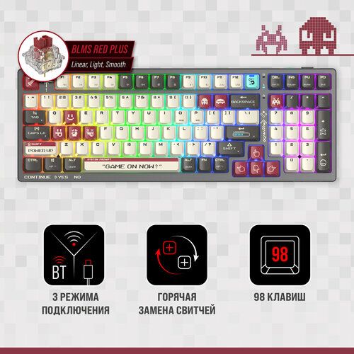 Найти - Клавиатура механическая A4Tech Bloody WS98 Pixels Red темно-серый, интерфейс USB, игровые клавиши, подсветка LED (WS98)