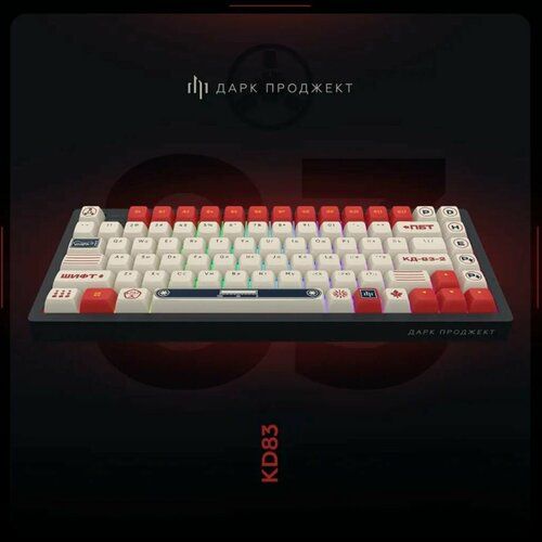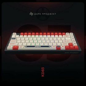 Dark Project KD83A Wireless объединяет в себе дизайн в стиле “Ретро” и яркие акценты на клавишах. Корпус окрашен в один цвет и он выглядит эстетично и сдержанно, а кейкапы наоборот смотрятся нестандартно за счет шрифтов и необычного дизайна некоторых кнопок. Плюс, у них вот прямо приятная на ощупь текстурная поверхность, что тоже понравится многим геймерам.