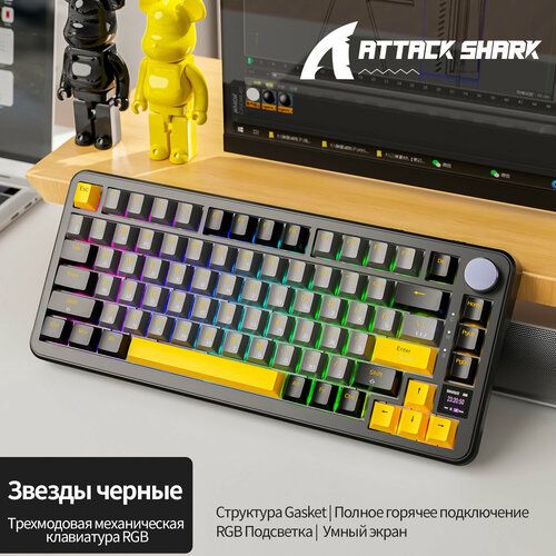 Найти - Клавиатура игровая Attack Shark X85Pro Black Star RGB (RUS), беспроводная, 80 кнопок, HotSwap, Gasket