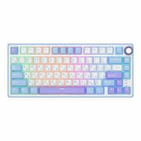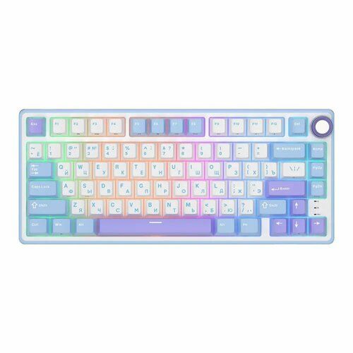 Royal Kludge R75 – это проводная механическая клавиатура, которая сочетает в себе стиль и функциональность. Она выполнена в молочно-белом цвете с голубыми акцентами, что делает ее привлекательной и стильной.