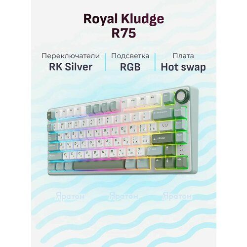 НАЙТИ ВЫГОДНЕЕ - Клавиатура RK Royal Kludge R75 Sky Cyan K Silver (линейный) переключатель