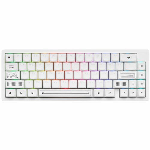 Игровая клавиатура Дарк Проджект KD65A [DP-DK-65A-010100-GZR], в первую очередь, обращает на себя внимание гибридной беспроводной системой подключения: модель может использоваться как автономно благодаря встроенному аккумулятору, так и будучи подключенной к компьютеру при помощи кабеля USB. К другим достоинствам устройства можно отнести 65 механических клавиш с линейными переключателями g3ms Zircon: они обеспечивают мгновенную реакцию на нажатия, что особенно ценится не только при повседневной работе, но и при прохождении различных игр.
