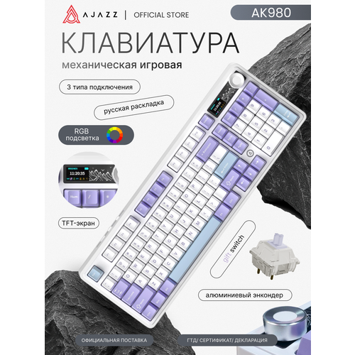 Найти - Механическая клавиатура Ajazz AK980, 3 режима подключения, RGB подсветка, Экран, Gift switch V2