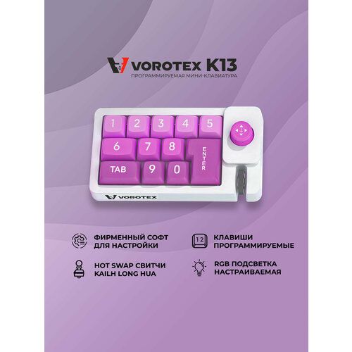 Программируемая механическая мини клавиатура VOROTEX K13 Long Hua Purple Switch - это высококачественное устройство, которое сочетает в себе удобство использования и функциональность.