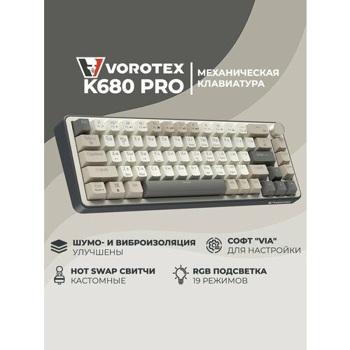 Клавиатура VOROTEX K680 PRO - это проводная игровая клавиатура, которая сочетает в себе стиль, функциональность и надежность.