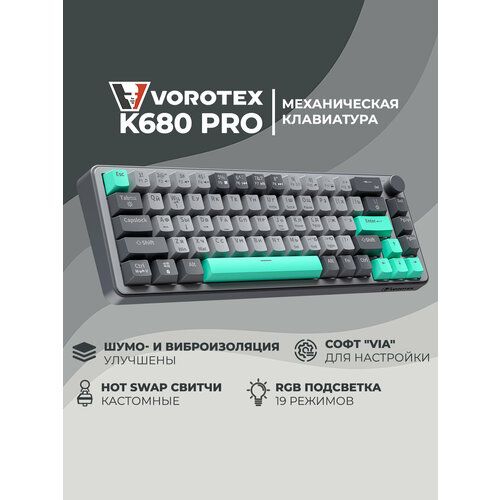 Клавиатура VOROTEX K680 PRO - это проводная игровая клавиатура, которая станет отличным дополнением к вашему настольному компьютеру, ноутбуку или стриминговому оборудованию.