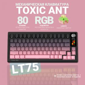 Найти - Механическая клавиатура с подсветкой и экранчиком Toxic Ant LT75, розовая