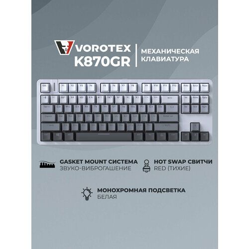 Найти - Клавиатура игровая проводная VOROTEX K870GR Outemu Red Switch, русская раскладка (серый градиент)