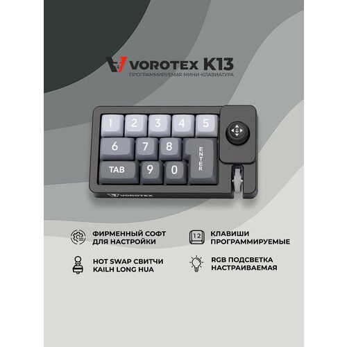 Программируемая механическая мини клавиатура VOROTEX K13 Long Hua Purple Switch - это высококачественное устройство, которое сочетает в себе удобство использования и функциональность.