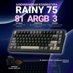 Эта клавиатура - отличное решение для работы и игр. Она гарантирует надежность и высокую производительность. Удобный дизайн спасает от усталости во время длительных сессий. С ней геймплей становится более увлекательным, а набор текста - комфортным. Механическая клавиатура Rainy75 порадует даже самых требовательных пользователей. Чистое звучание при нажатии добавляет положительные эмоции в процессе работы или игры. Кейкапы разработаны с учетом потребностей пользователей, обеспечивая отличный отклик и долговечность. Беспроводная версия дает свободу движения. Забудьте о мешающих проводах дома или в офисе. Подсветка добавляет еще больше индивидуальности и помогает работать в темное время суток. Игровая клавиатура спроектирована так, чтобы вы могли уверенно побеждать в любых играх. Удобные функции помогают достичь максимальной эффективности в игровой среде. Каждое нажатие четкое и отзывчивое, что делает игровой процесс еще более захватывающим. Компактный формат позволяет удобно разместить аппарат на столе без потерь функционала. Миниатюрная конструкция идеально впишется даже в ограниченное пространство рабочего места. Это особенно актуально для использования на ноутбуках. С данным аппаратом ваша работа станет легче, а игры — ярче Симбиоз стиля, функционала и комфорта ждет вас. Позвольте себе насладиться каждой буквой и встречайте новые достижения вместе с этой клавиатурой