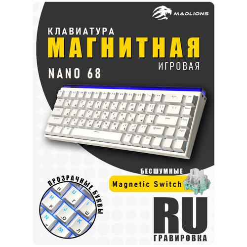 Найти - Игровая проводная клавиатура MADLIONS NANO68, с RGB подсветкой. Магнитные свичи. Белая