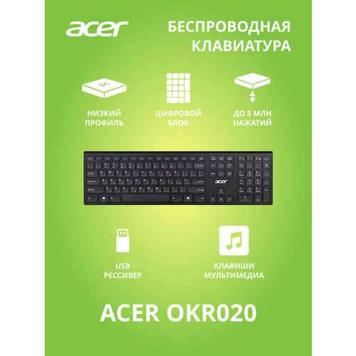 Найти - Беспроводная клавиатура Acer OKR020 черный, русская, 1 шт.