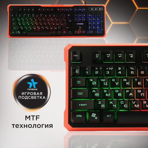 Проводная игровая клавиатура Гарнизон черно-оранжевая 104 клавиши с подсветкой Rainbow 1.5 метра GK-320G - это высококачественное устройство, которое обеспечивает комфорт и удобство во время игры.
