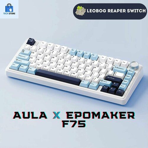 Найти - Игровая клавиатура Aula F75 бело-сине-голубая, свитчи Leobog Reaper