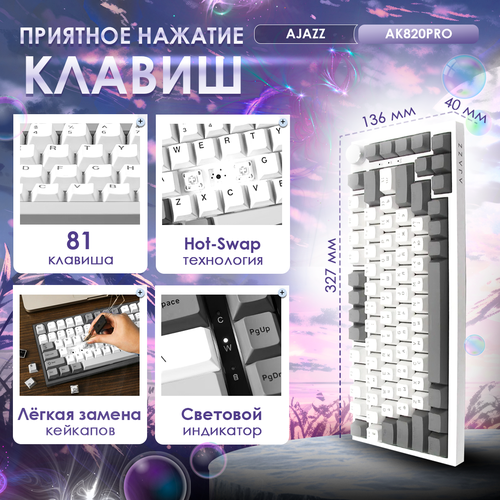 Белая подсветка с лёгкостью поможет найти нужные клавиши ночью и погрузиться в яркую атмосферу мира гейминга. Одной из ключевых особенностей клавиатуры AJAZZ AK820 является эргономичный энкодер, который обеспечивает мгновенный доступ к функциям регулировки громкости и яркости освещения подсветки. Русская раскладка позволит легко использовать клавиатуру на родном языке, что особенно важно для геймеров, играющих русскоязычные версии видеоигр.