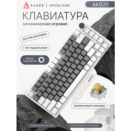 Найти - Механическая клавиатура с белой подсветкой Ajazz AK820, Mille-feuille Yellow Switch, бело-серая