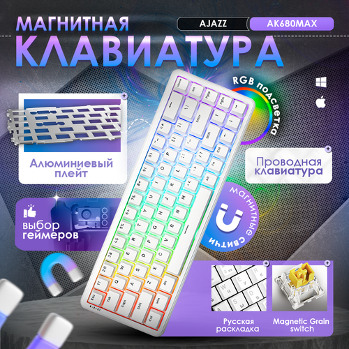 НАЙТИ ВЫГОДНЕЕ - Магнитная игровая проводная клавиатура AJAZZ AK680 MAX Magnetic Grain Switch с подсветкой RGB и алюминиевым плейтом