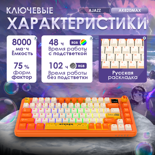 Одной из ключевых особенностей клавиатуры AJAZZ AK820 MAX является эргономичный энкодер, который обеспечивает мгновенный доступ к функциям регулировки громкости, смены языка, цвета и яркости освещения RGB подсветки. Русская раскладка позволит легко использовать клавиатуру на родном языке, что особенно важно для геймеров, играющих в русскоязычные версии видеоигр.